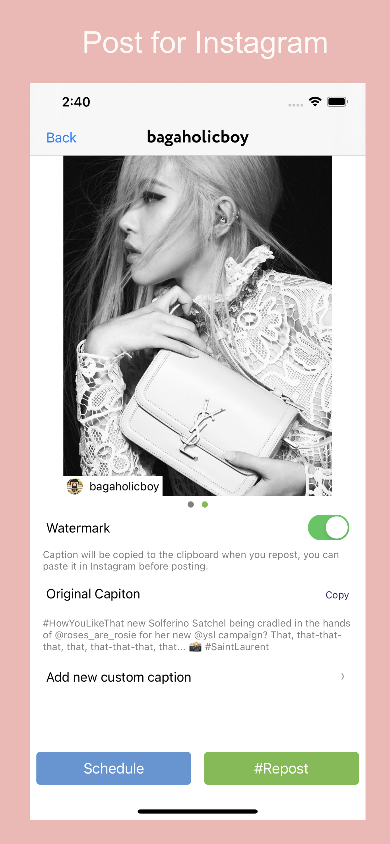 * Downloading media from Instagram to your device is against Instagram's policy. Our app is simply reposting from the links that you copy.